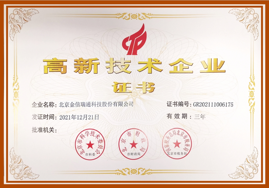 喜報(bào):金信瑞通榮獲中關(guān)村高新技術(shù)企業(yè)稱號并獲得多項(xiàng)5G軟...
